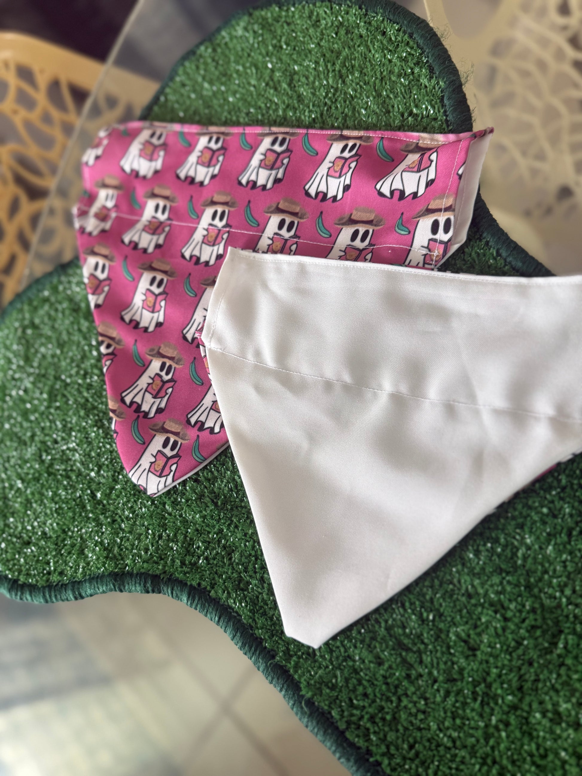Bandana para poner el collar por dentro. Material especificamente diseñado para mojarse y pasear a la mascota. Añadiendo un toque de refrescante a ese paseo cotidiano. Diseñada, cocida y empacada en Puerto Rico 🇵🇷