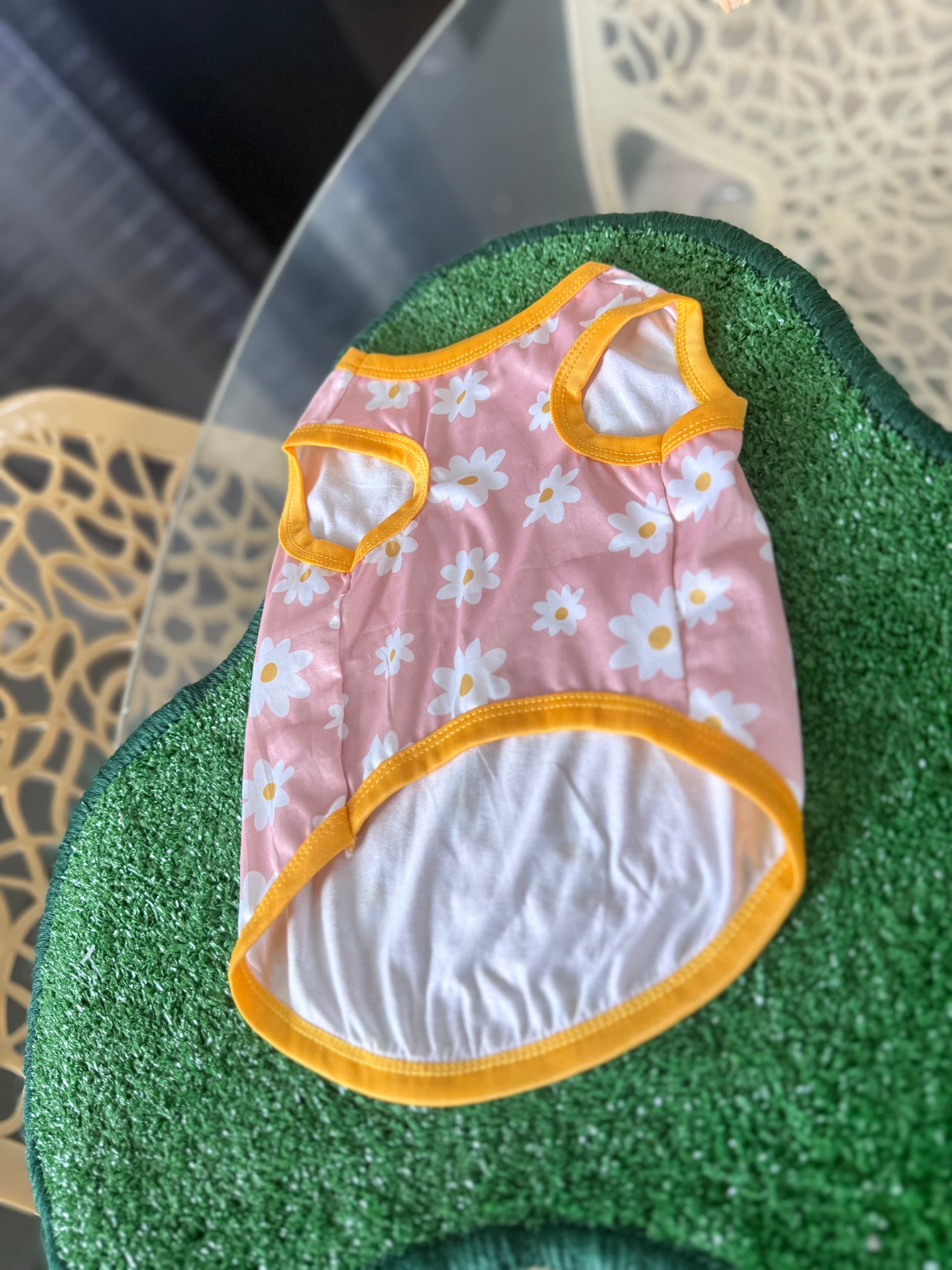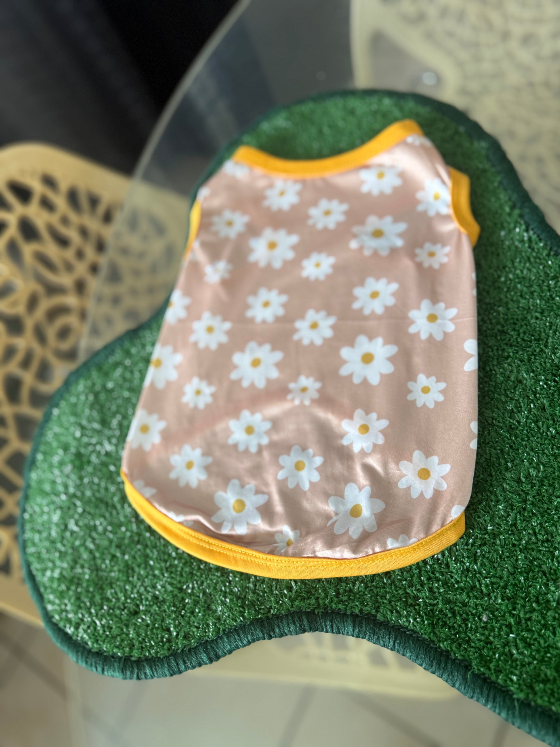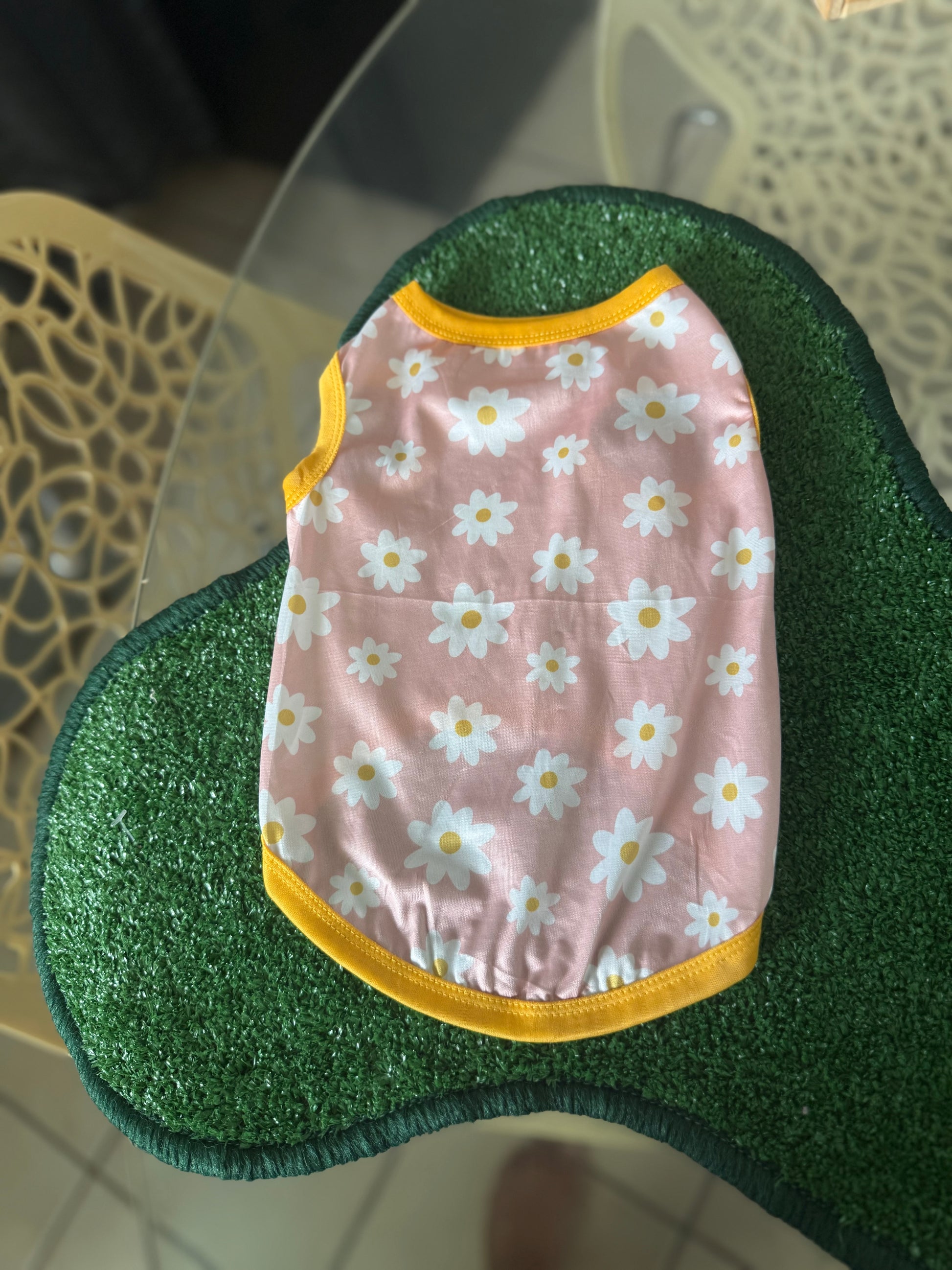 Camisa con print floral. El material es liviano para mantener a la mascota fresca.